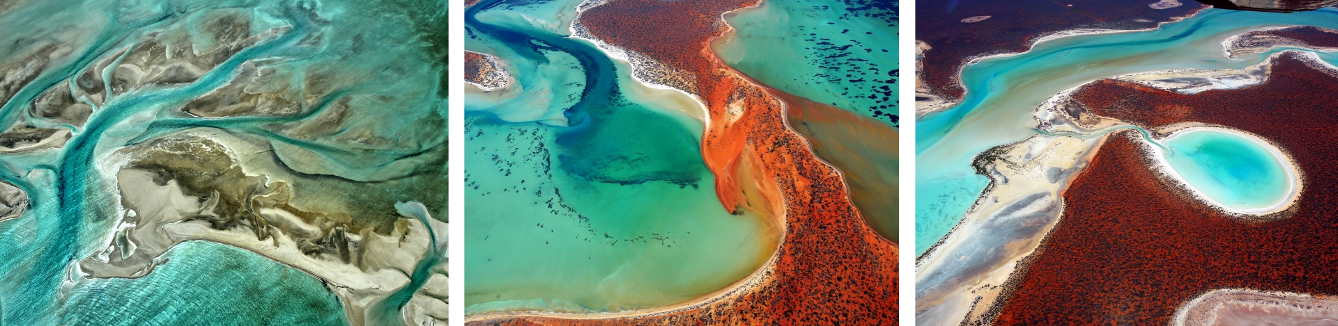 Ein riessiger Nationalpark im Westen von Australien. Eher ein Park für Wasserbewohner wie Delphine, Seekühe. Aber aus der Luft eröffnet sich einem eine herrliche abstrakte Landschaft.